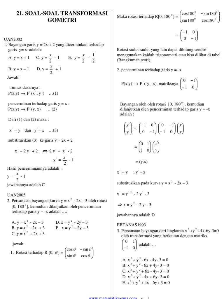 21 Soal Soal Transformasi Geometri Pembahasan Pdf